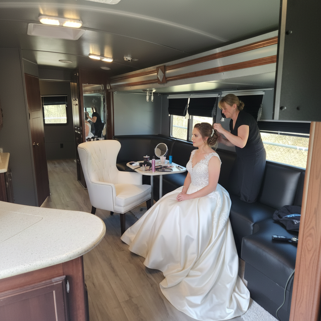 A luxury mobile lounge ideal for weddings, families, corporate events, and private gatherings.